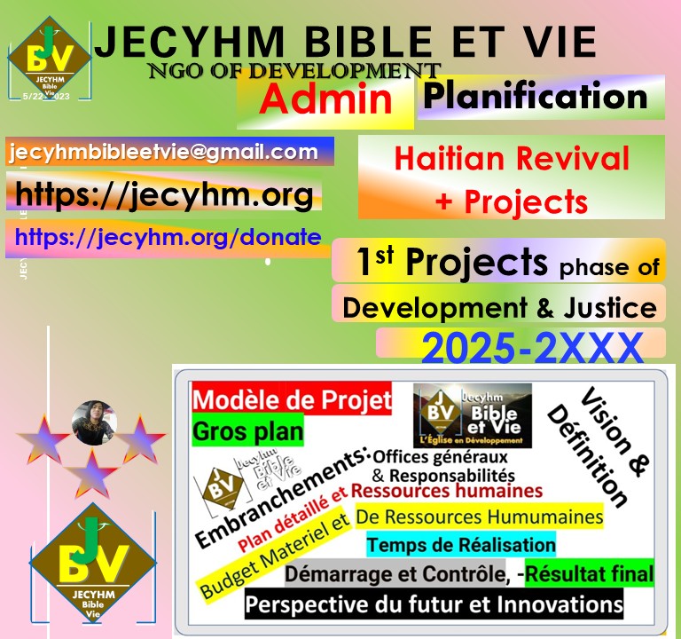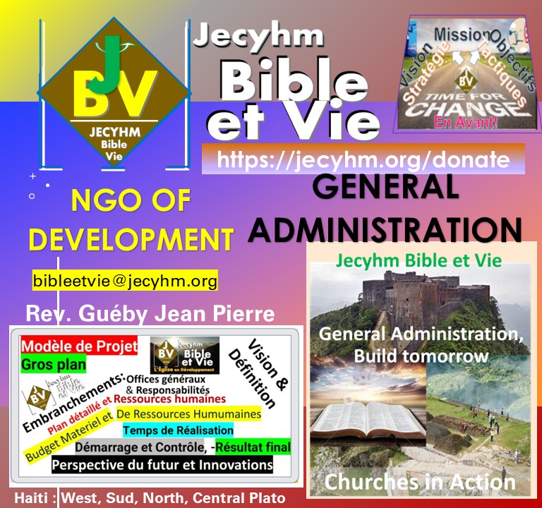 Ceci est la Présentation de Jecyhm Bible et Vie comme une organisation évangélique à but non lucratif. Cette organisation recherche Yahweh par Jesus-Christ de Nazareth et travaille pour le Développement des plus démunis. Actes des Apôtres n’en faisaient pas moins en son temps. Les premiers Chrétiens réunissaient leurs biens (Actes2:45) pour la croissance de tous. Notre premier initiative cible la République Haïti, ou Hayti, le pays qui a Yah, YHWH, Yahweh pour contrôleur et Seigneur.